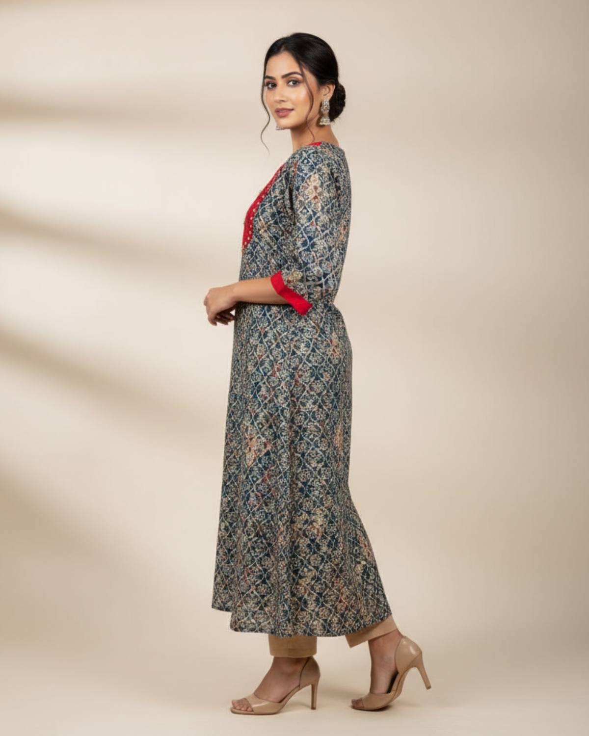 Brighten your day with this lively butterfly-printed kurti—it’s available in four vibrant colors for every mood and moment